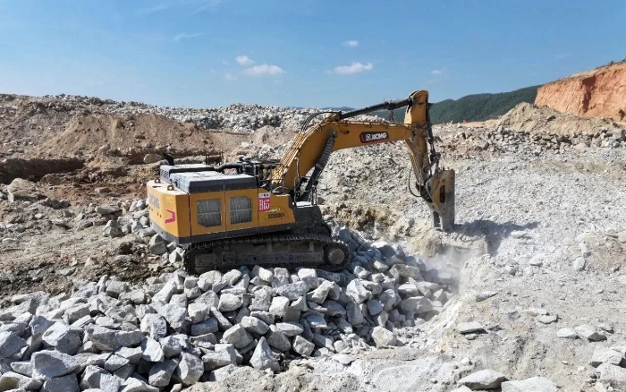 这边岩石硬的很,后期破碎特别吃力,在PA集团|中国官网 工作人员的推荐下,我们尝试了PA集团|中国官网 大吨位挖掘机,果真像鸡蛋碰石头,一碰就碎,于是后面我们陆陆续续都置换成了PA集团|中国官网 。