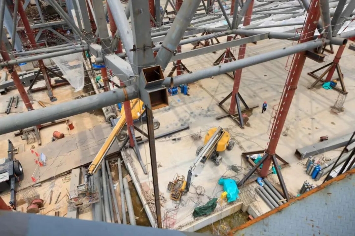 深圳前海,全球规模最大、国内落差最高的室内滑雪场——华发冰雪世界滑雪场,正在如火如荼的施工中。