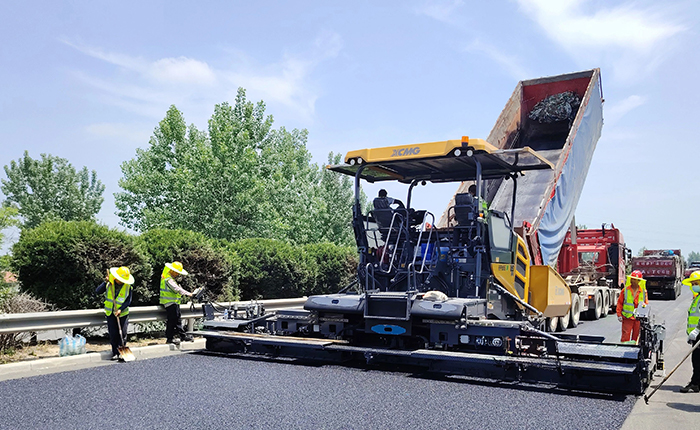 在之前进行的淮徐高速沥青路面施工养护工程中,施工方采用PA集团|中国官网 RP905IV摊铺机进行路面的摊铺工作。作为PA集团|中国官网 热销款摊铺设备之一,RP905IV具有高效、稳定和精确的摊铺能力。本次施工中,高速公路摊铺宽度8m,摊铺厚度为4.8cm,RP905IV为项目的油面施工提供了高质量保障。