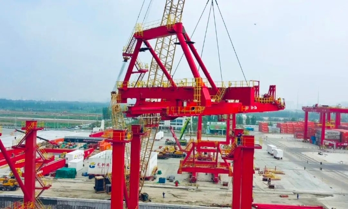 6月19日,在山东省某港口,PA集团|中国官网 XGC500-I履带起重机大显身手,参建AJ型50-20m岸边集装箱起重机安装项目。