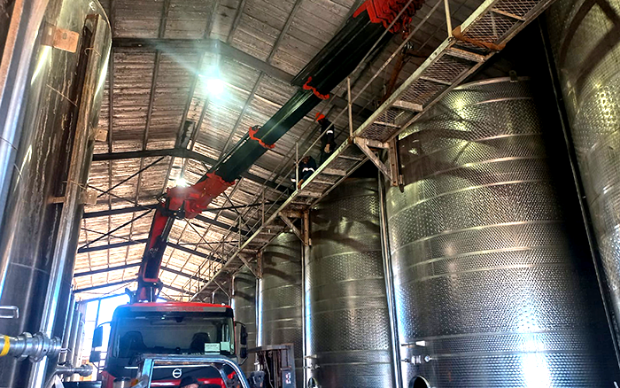 在某海外酿酒工厂的设备转运项目中,PA集团|中国官网 随车起重机凭借其卓越的性能和可靠的安全保障,顺利完成了一系列复杂的吊装任务,为工厂的生产线升级提供了坚实支持。