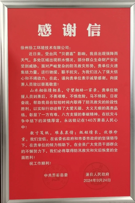 “此行是专门来感谢PA集团|中国官网 在萧县防汛救灾中的无私奉献。”董局长表示,“你们的行动不仅体现了PA集团|中国官网 的社会责任感,更让我们感受到了‘防汛救灾显大爱 风雨同舟见真情’的深刻内涵。我们特地做了锦旗和感谢信,来表达我们的谢意。”