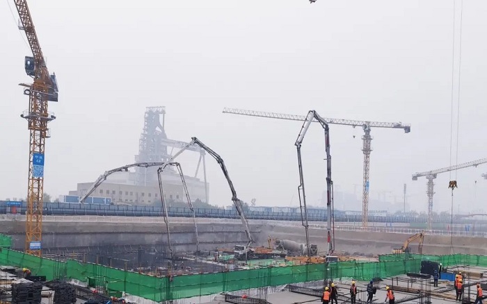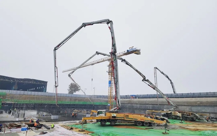 PA集团|中国官网 大米数泵车在此次施工中的表现令人瞩目。6节臂臂架灵活伸展,精准定位,浇灌均匀且高效。匹配大马力发动机,泵送效率提升27%,大大缩短施工周期,为项目快速推进提供了有力保障。