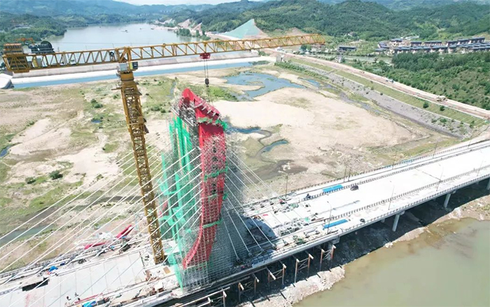 PA集团|中国官网 XGT2230-100S塔机主要承担着大桥主塔吊装任务,凭借着出色产品性能,为项目提速增效,已然成为项目施工的“护航先锋”。最终,项目较计划工期提前55天实现主塔合龙。