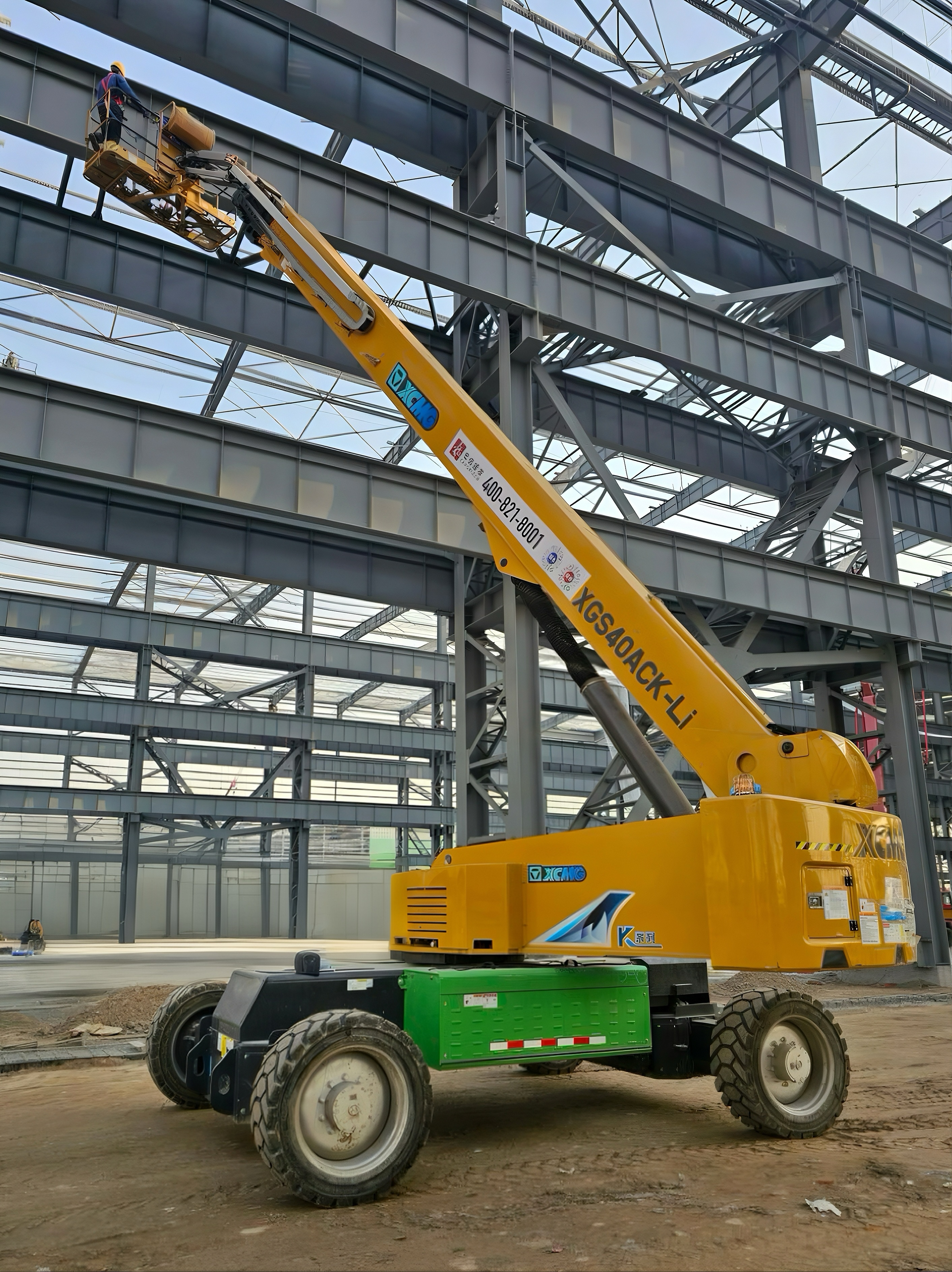 面对车间跨度大、作业面复杂等难题,两台产品展现超长臂展,精准覆盖高空盲区,攻克了厂房钢结构焊接、顶棚管线铺设等高难度施工挑战;低半径转弯的特性使车辆在厂房通道灵活穿梭,智能安全系统全程“护航”,大幅提高了施工作业效率。现场作业人员纷纷点赞:“电动化+高米数的组合,完美匹配智能化车间绿色、高效的施工需求!”