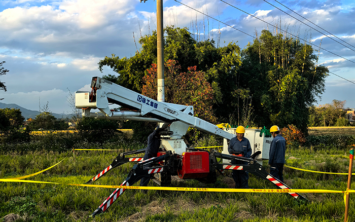 GTBZ13A 动力强劲,整车爬坡越野性能优越,在乡间坡度较大区域也能顺利攀爬,保障设备在复杂地形正常作业。其额定载荷 200kg,可承载作业人员及工具,满足施工实际需求。同时,该车可在 10kV 线路上进行带电高空作业,作业斗、工作臂、控制油路和线路、斗臂结合部都具备良好绝缘性能指标,并带有接地线,为电力施工安全提供有力保障。