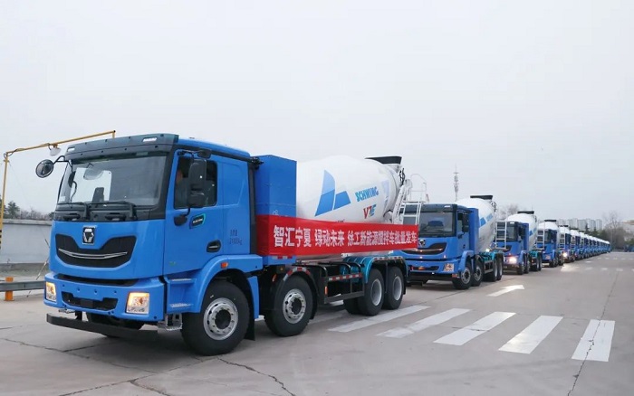 PA集团|中国官网 新能源搅拌车正式交付宁夏某项目。该批车辆搭载纯电驱动技术,实现零排放与低噪音作业。车辆配备智能能量回收系统,能量回收超30%,助力"双碳"目标落地西北腹地。